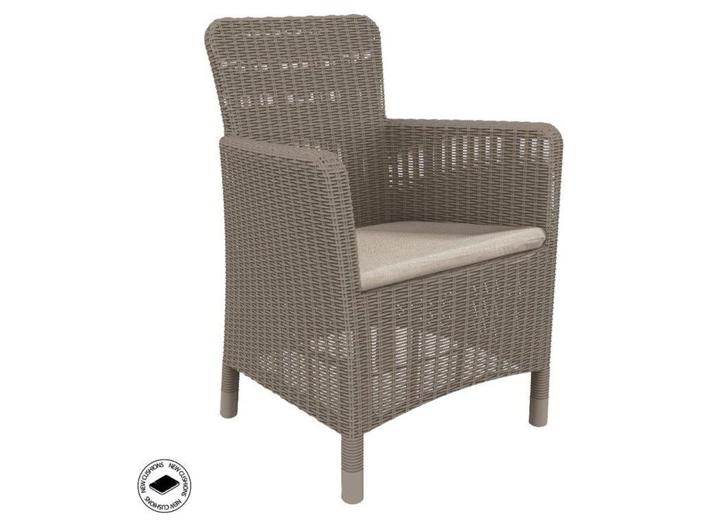 Design umělého pleteného ratanu v barvě Cappuccino zaujme na první pohled a křeslo díky stylovému a modernímu vzhledu zapadne dokonale do každého interiéru i venkovních prostor.