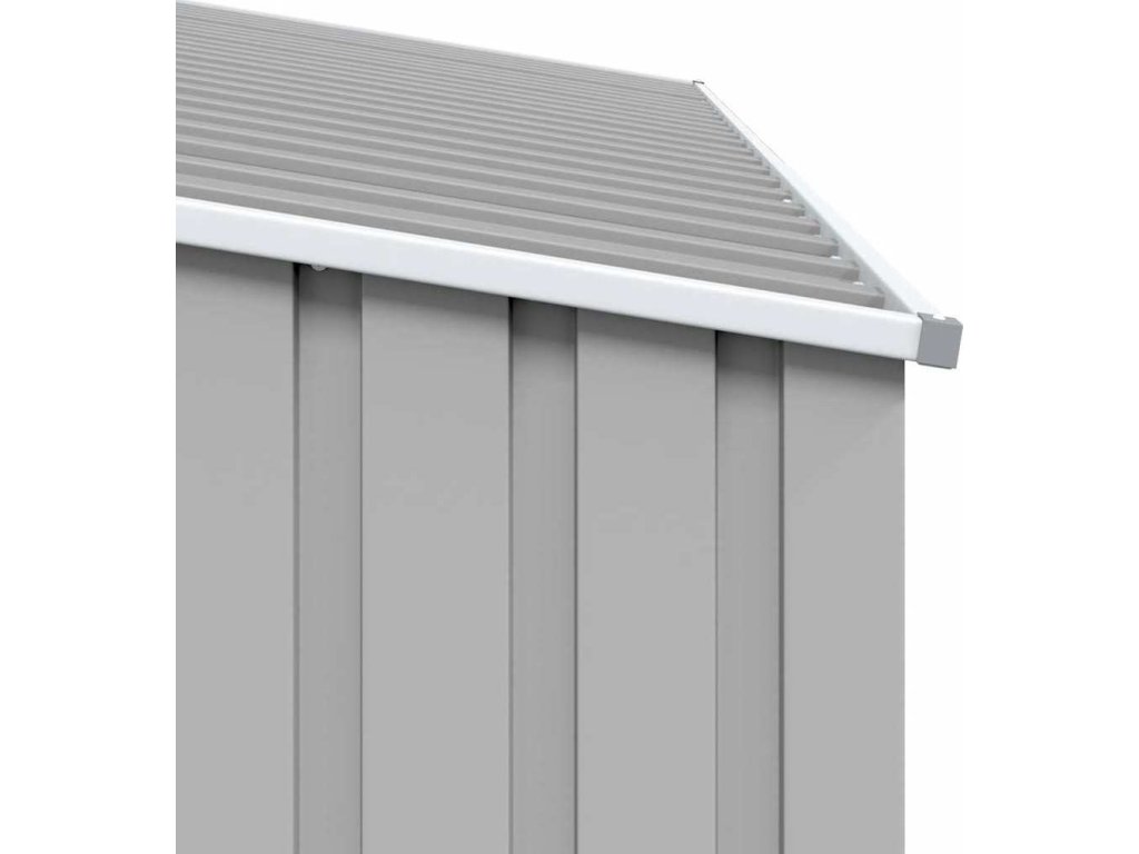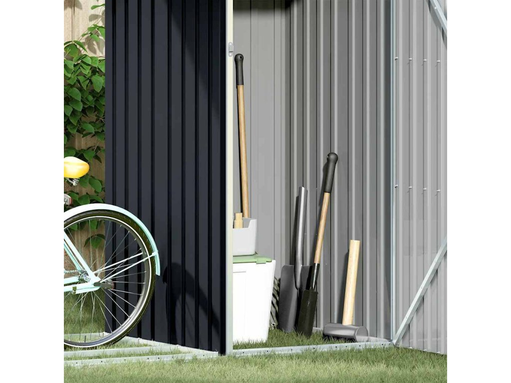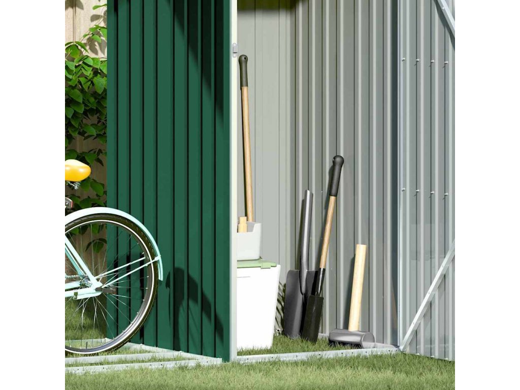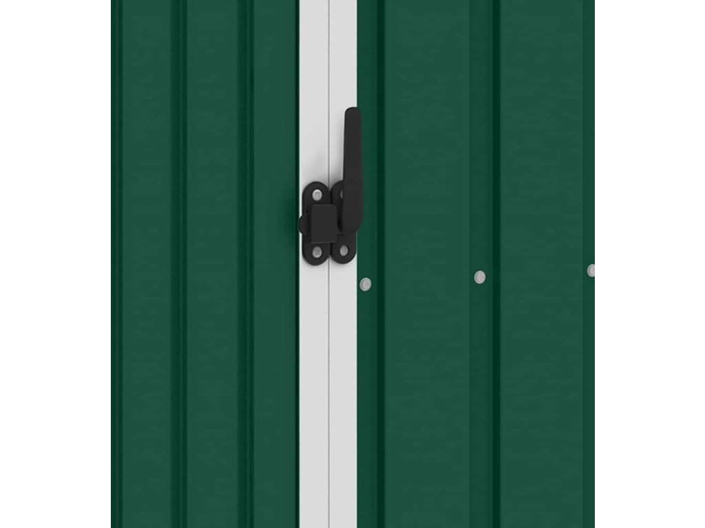 - Odolný materiál: Díky pozinkované oceli vyžaduje domek minimální údržbu a je velmi odolný. Dešťová voda díky šikmé konstrukci automaticky odtéká ze střechy.