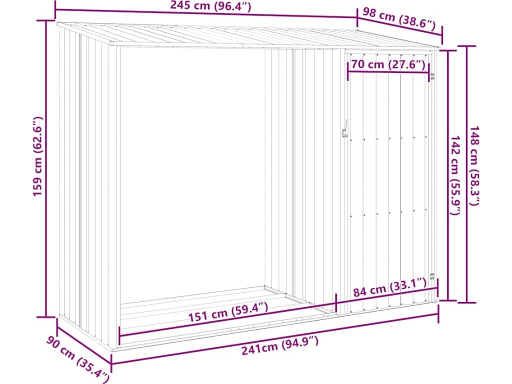Zahradní kůlna na dříví 245x98x159 cm pozinkovaná ocel [46294]