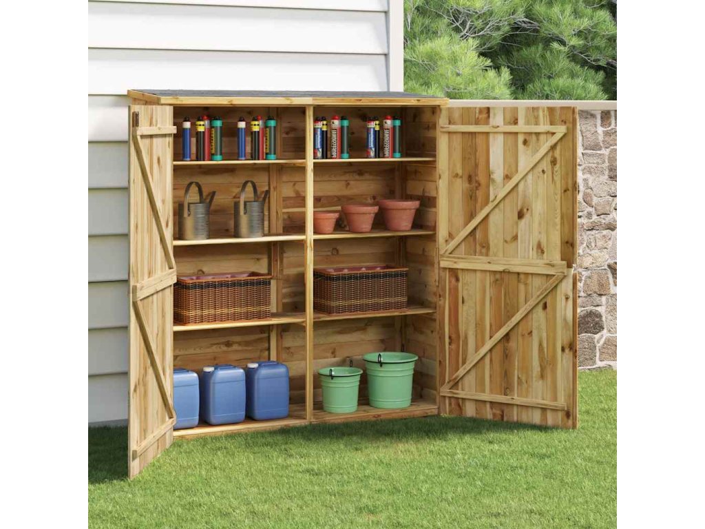 - Impregnovaná borovice: Kůlna je vyrobená z impregnovaného borového dřeva a zajišťuje ochranu před nečistotami, prachem, větrem a nepříznivým počasím. Impregnace je konzervační proces, který se provádí pomocí autoklávu. Tlaková úprava zvyšuje odolnost proti trouchnivění a vodě.