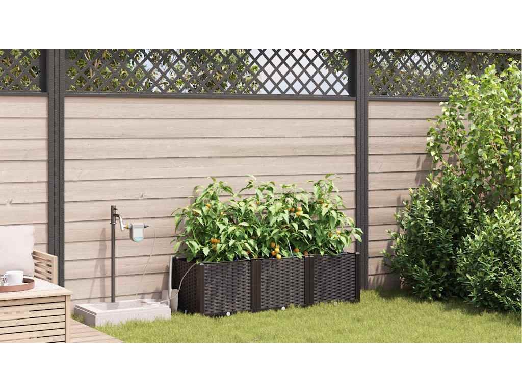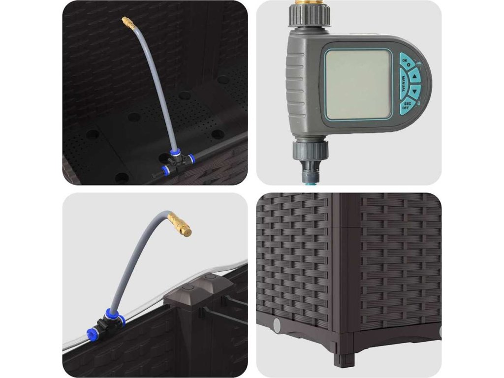 Zahradní truhlík se zavlažováním je ideální pro ty, kdo hledají praktickou a hezkou možnost do svého venkovního prostoru. S moderním a elegantním designem se bezproblémově hodí do jakékoli zahrady nebo na terasu. Zaměřuje se na jednoduchost a funkci, takže dodává vašim rostlinám styl, ať už jste zkušený zahradník, nebo začátečník. Tento truhlík spojuje styl a užitečnost a vytváří hezké prostředí pro vaše botanické projekty.