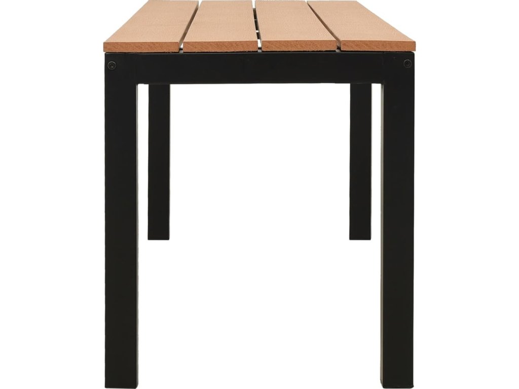 Lavička na terasu je vyrobena z oceli a WPC (dřevoplastu), kombinace dřeva a plastu, což je bezpečný a trvanlivý materiál pro venkovní použití. Je to výborná volba pro každou zahradu nebo jiný venkovní prostor.