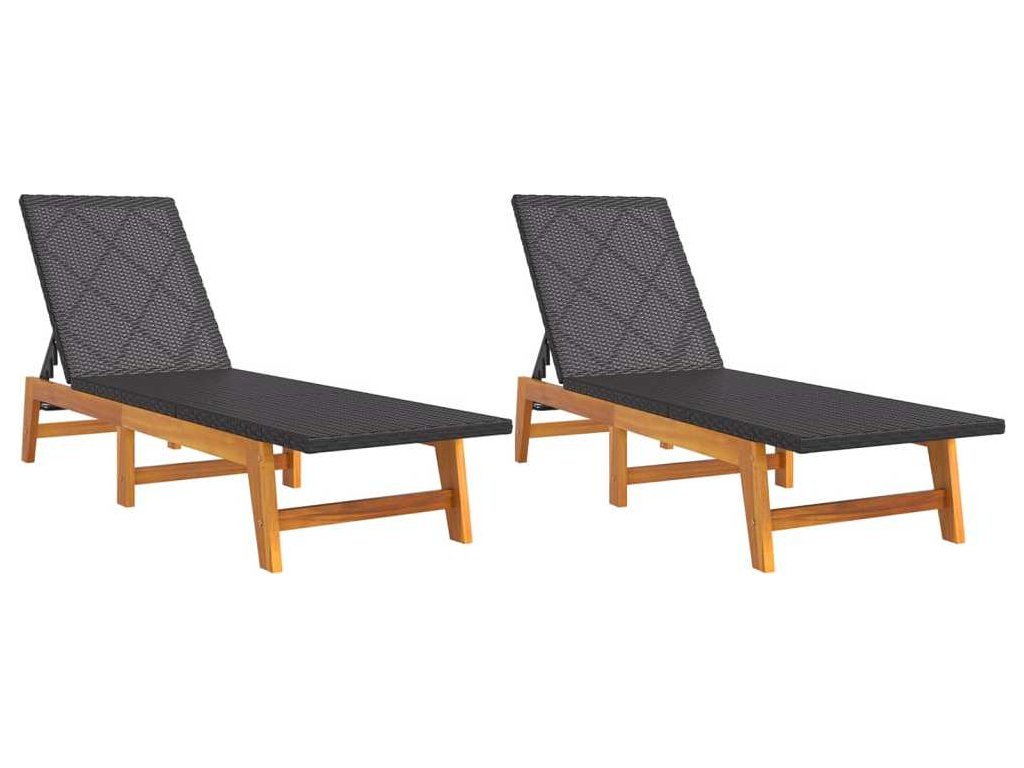 Zahradní lehátka 2 ks černá a hnědá polyratan a masivní akácie [319728]