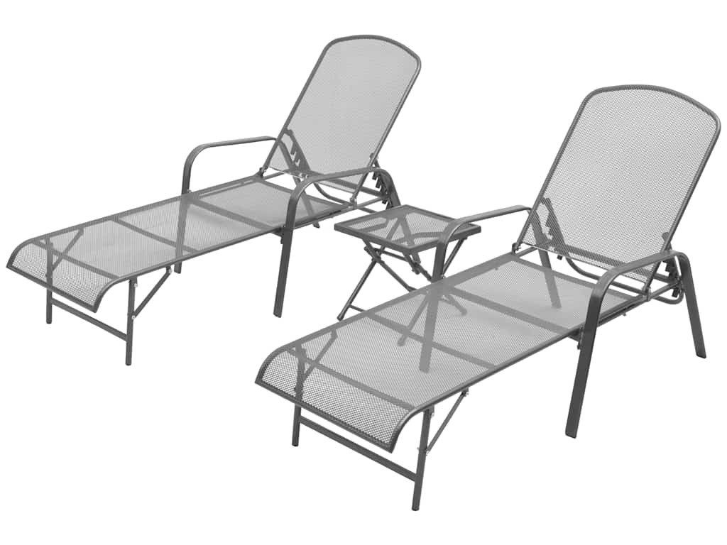 Zahradní lehátka 2 ks se stolkem ocelová antracitová [42727]