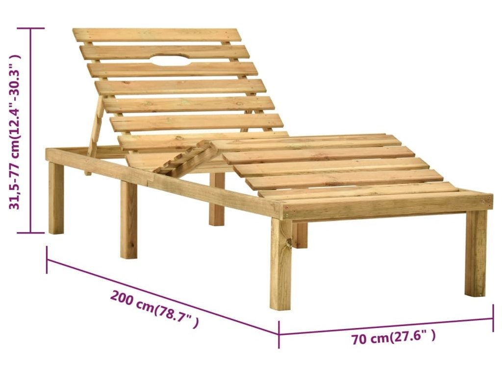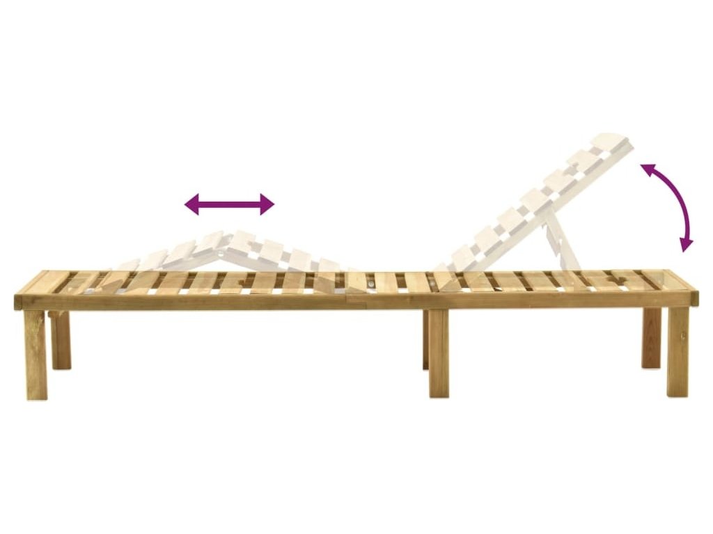 Toto zahradní lehátko je vyrobené z impregnovaného borového dřeva, které je odolné vůči hnilobě a má velmi dlouhou životnost, takže je extrémně vhodné pro venkovní použití. Opěradlo a opěrka nohou jsou nastavitelné, protože můžete najít nejpohodlnější polohu.