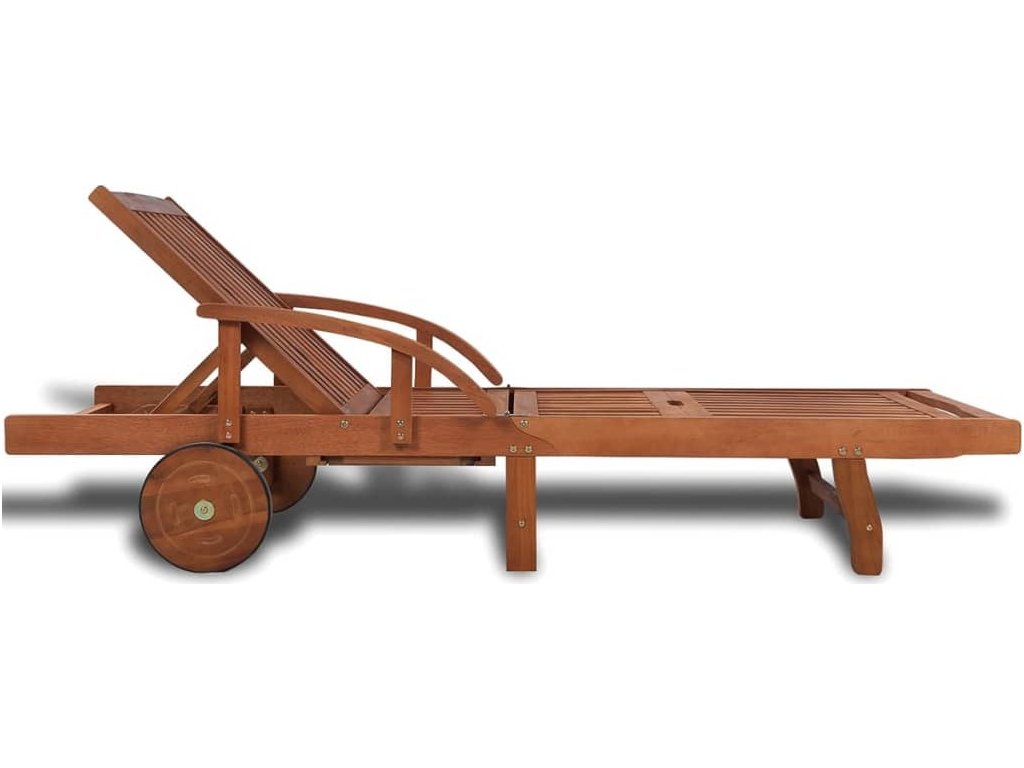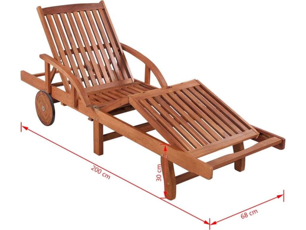 Toto zahradní opalovací lehátko je zhotovené z odolného, světlým olejem napuštěného akáciového tvrdého dřeva, které je charakteristické svou výbornou odolností vůči povětrnostním podmínkám. Naše akáciové lehátko je tudíž v každém ohledu vhodné pro venkovní použití. Je vybavené 2 kolečky, která usnadňují jeho přesouvání. Praktickou stránku lehátka zajišťuje malý výsuvný stolek, na který si můžete odkládat váš telefon, sluneční brýle, nápoje a další drobnosti. Opěradlo je nastavitelné do 5 poloh, a to od pozice vsedě se vzpřímenými zády až po pozici vleže. Opěrka nohou je také nastavitelná. Laťkový sedák a opěradlo vám poskytnou příjemnou oporu, stejně jako dvě područky, o které se můžete pohodlně opírat. Hoďte starosti za hlavu na tomto báječném opalovacím lehátku!