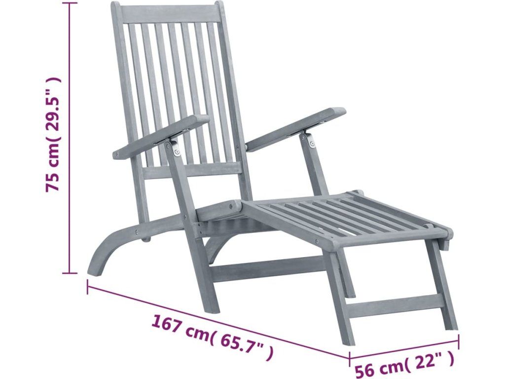Zahradní lehátko s opěrkou nohou šeděné masivní akácie [45957]