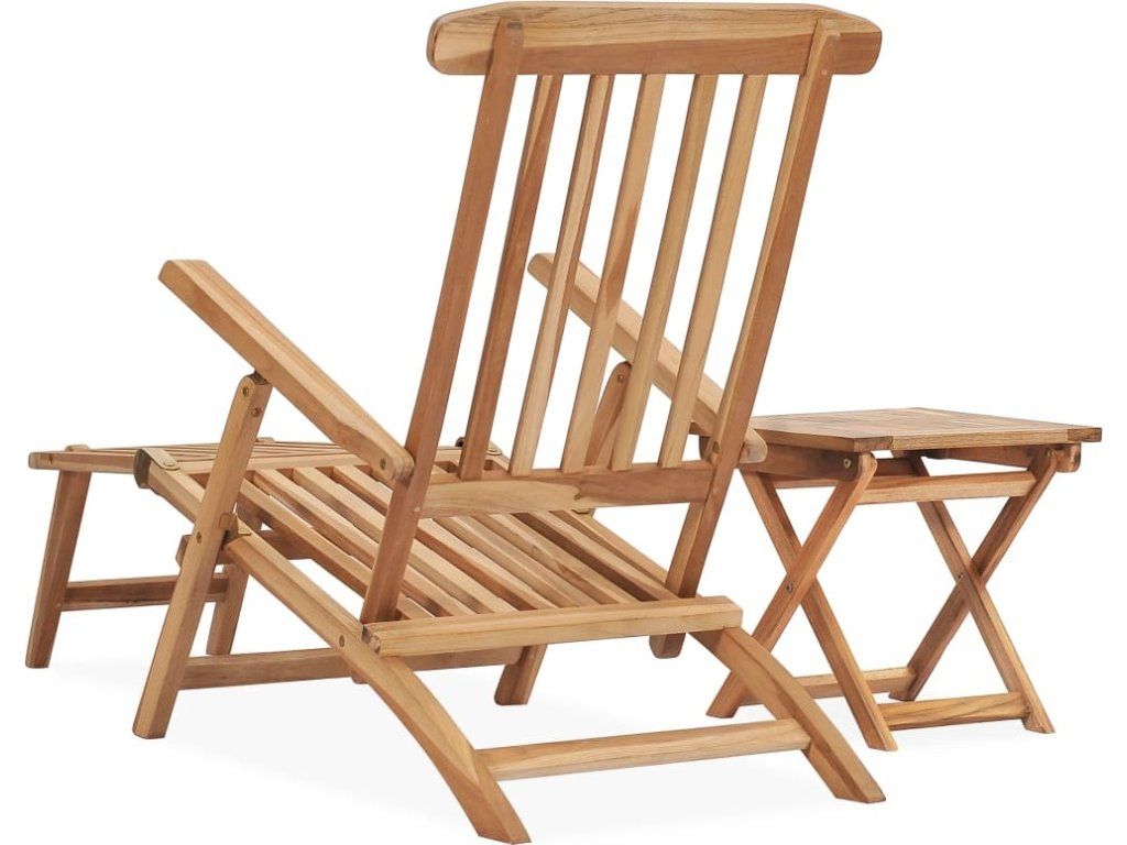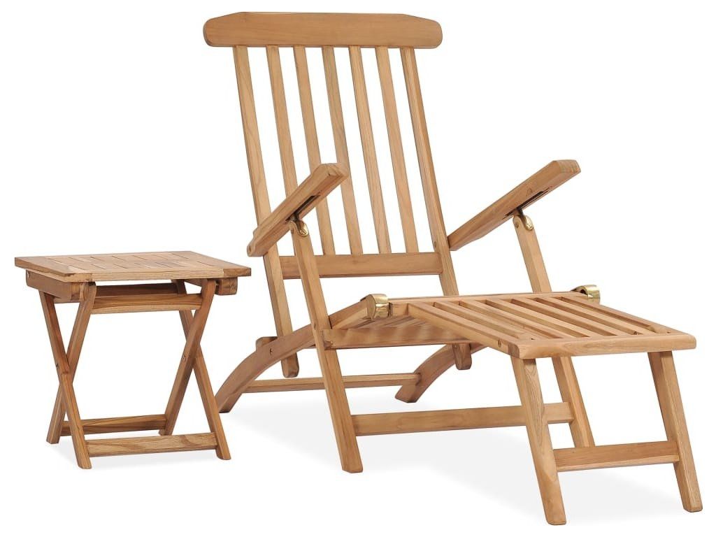 Zahradní lehátko s podnožkou a stolkem masivní teakové dřevo [315376]