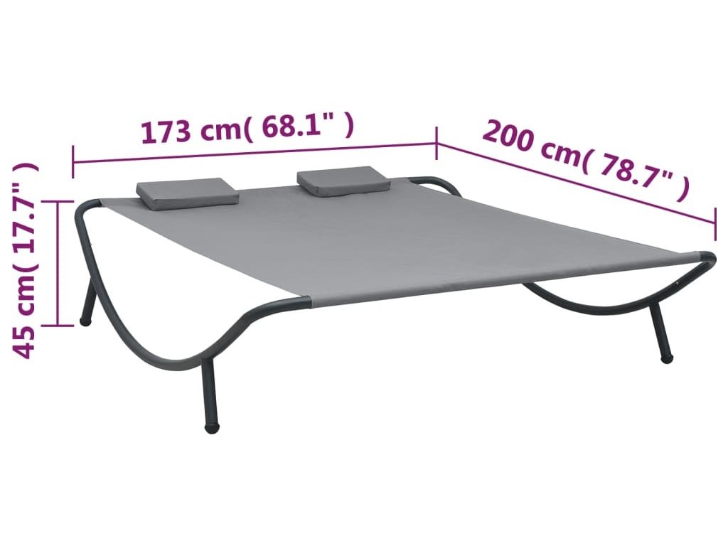 Lehátko je vyrobeno z materiálu oxford odolného proti povětrnostním vlivům a lze jej používat venku po celý rok. Ocelový rám s práškovým nástřikem dodá výbornou stabilitu a zajistí dlouhou životnost a vynikající odolnost. Součástí balení jsou také vysoce pohodlné, silně polstrované polštáře, aby se vám dobře a pohodlně leželo. Polyesterové potahy na polštář se snadno udržují, je možné je sejmout a vyprat.