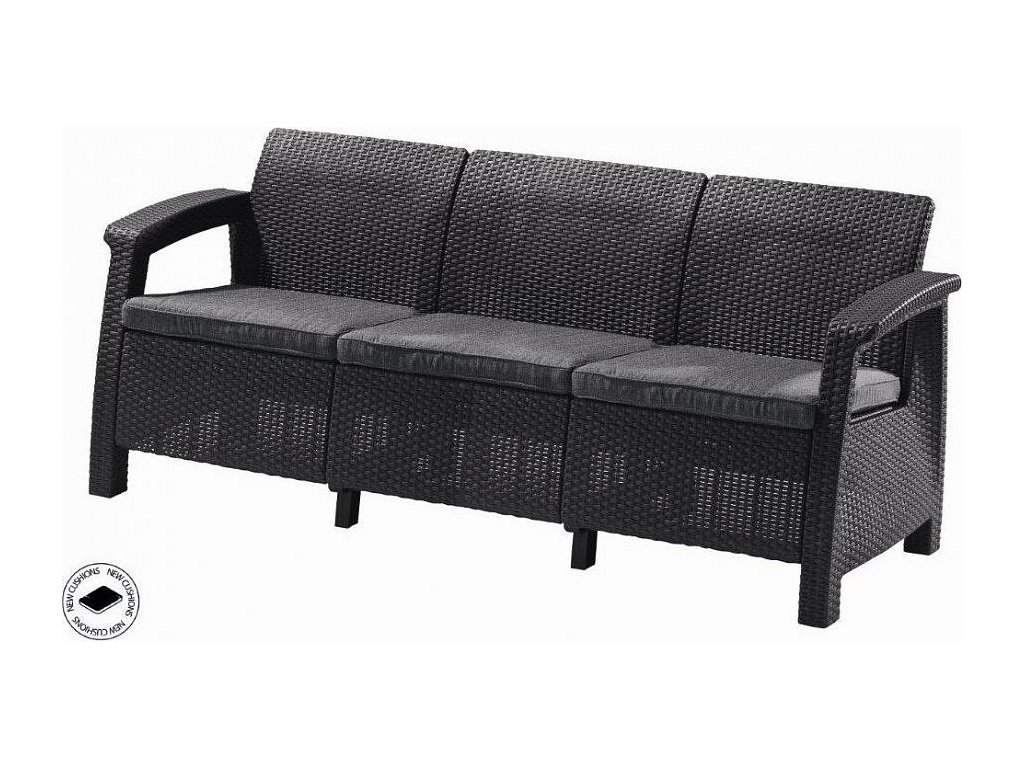 Zahradní trojmístná pohovka z řady Corfu je nejoblíbenější z řady nábytku Keter, která vás nadchne svým nevšedním designem v imitaci přírodního ratanu. Konstrukce je přitom pevná a vydrží běžné zatížení venkovního provozu.