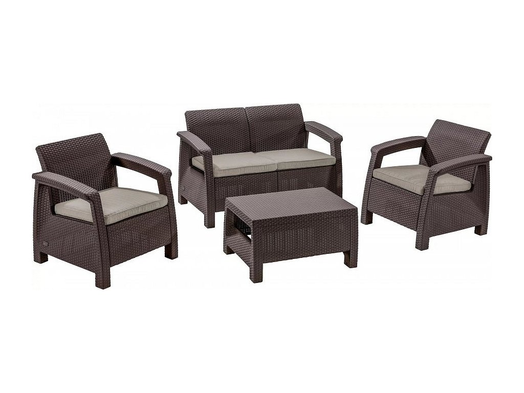 Zahradní nábytek Keter Corfu set dvousedačka + dvě křesla + stůl hnědý [610398]