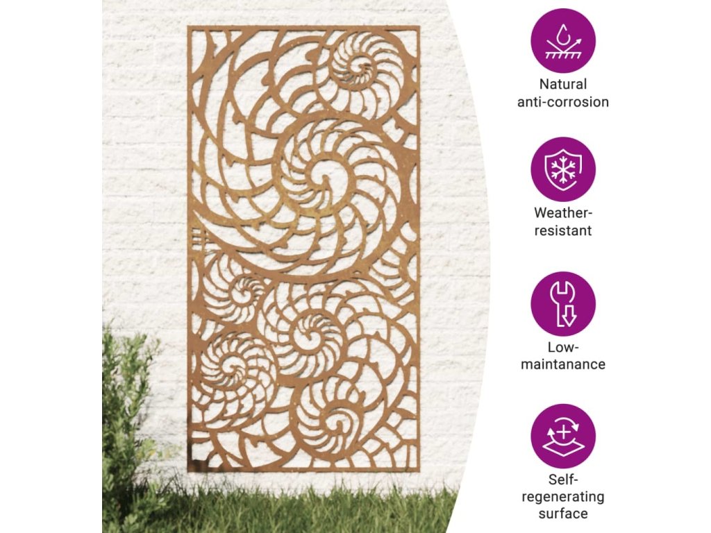 - Jedinečný design: Kovová nástěnná dekorace má vyřezávaný vzor ulit, se kterým vaše zahrada získá na atraktivitě.