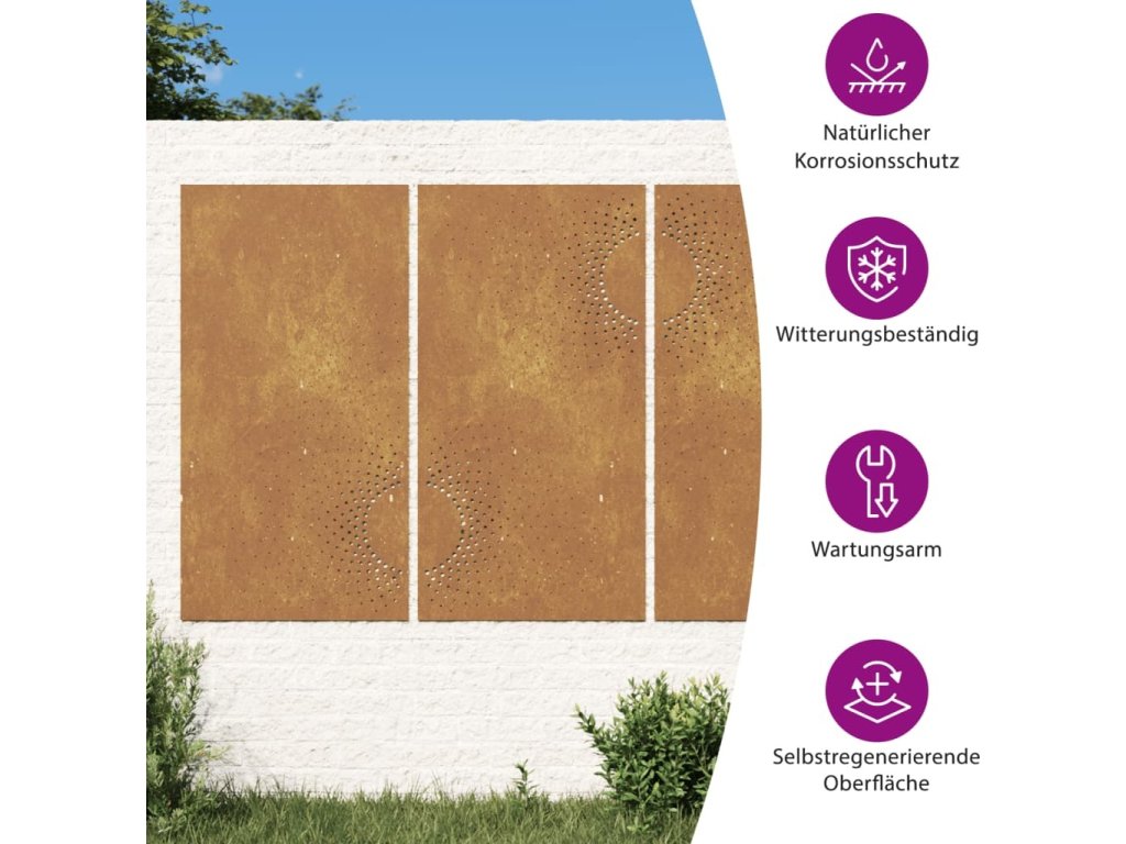 Zahradní nástěnné dekorace 3 ks 105x55 cm cortenová ocel Slunce [824512]
