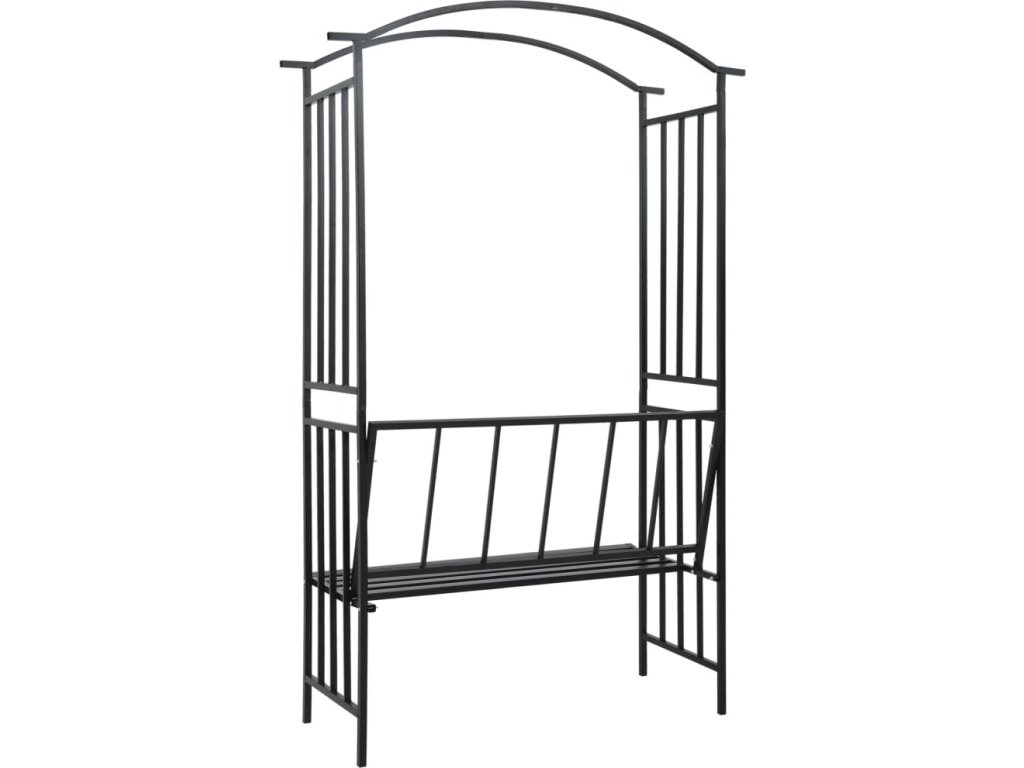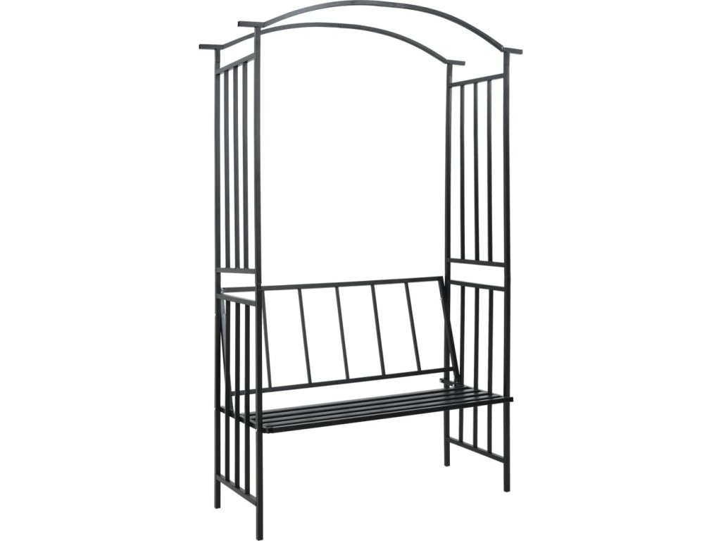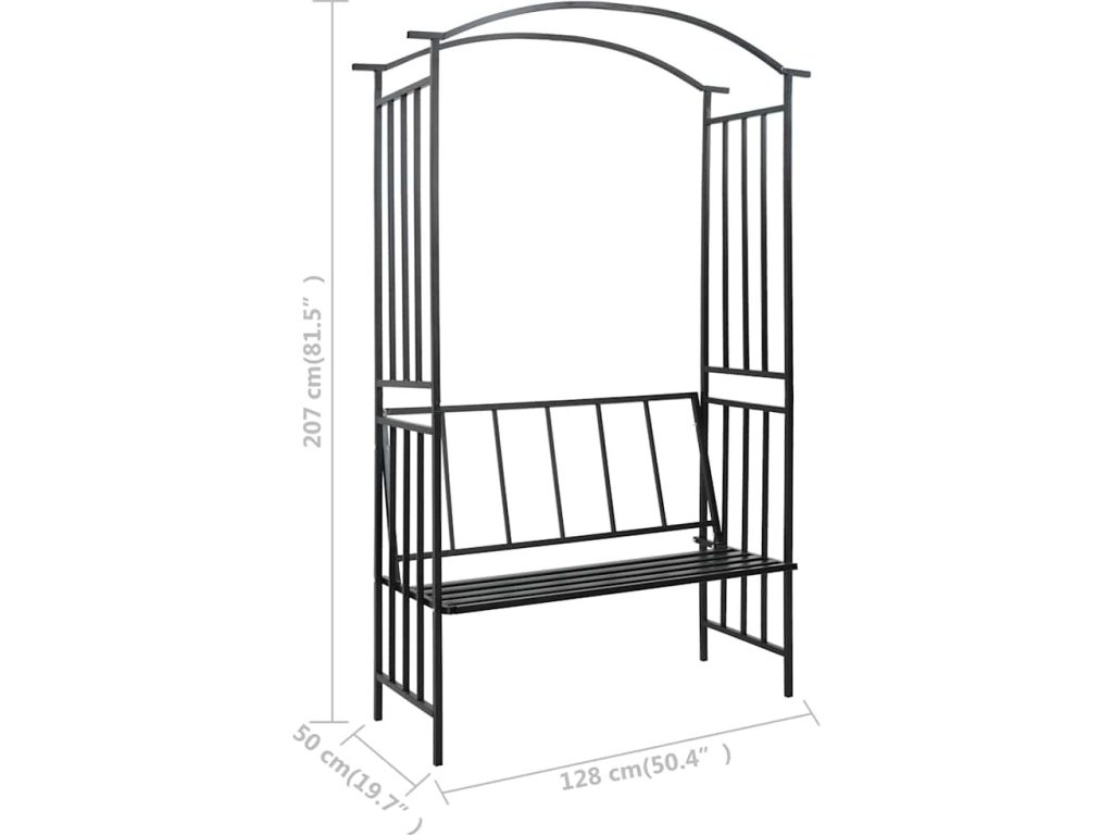 Zahradní oblouk s lavičkou černý 128 x 50 x 207 cm železný [47093]
