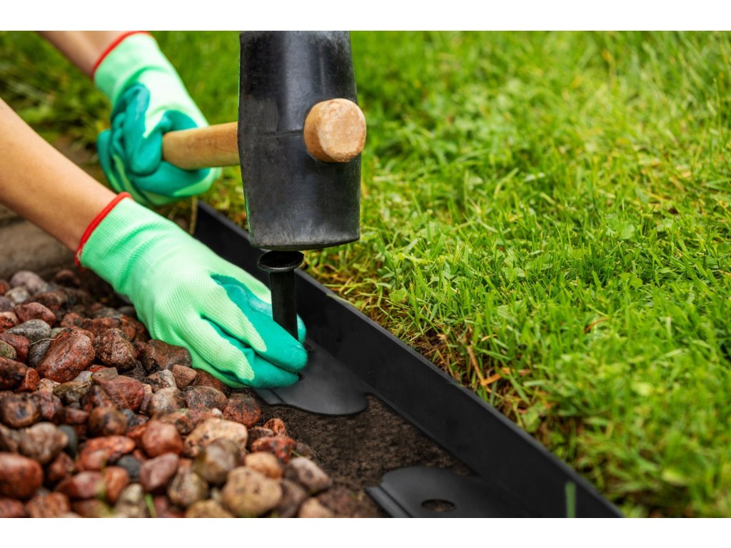 Vytvoření nového záhonu nebo plochy – rozložte obrubník do požadovaného tvaru, zasypte vnější a vnitřní stranu zvoleným materiálem (zemina, mulč, štěrk a podobně).