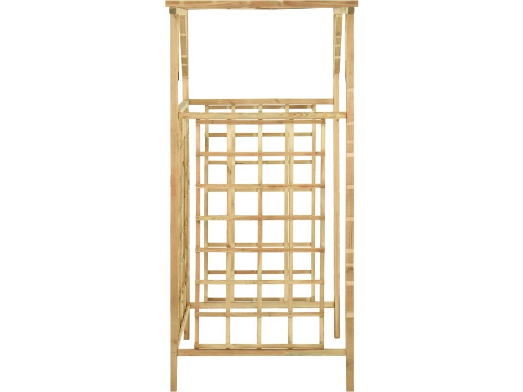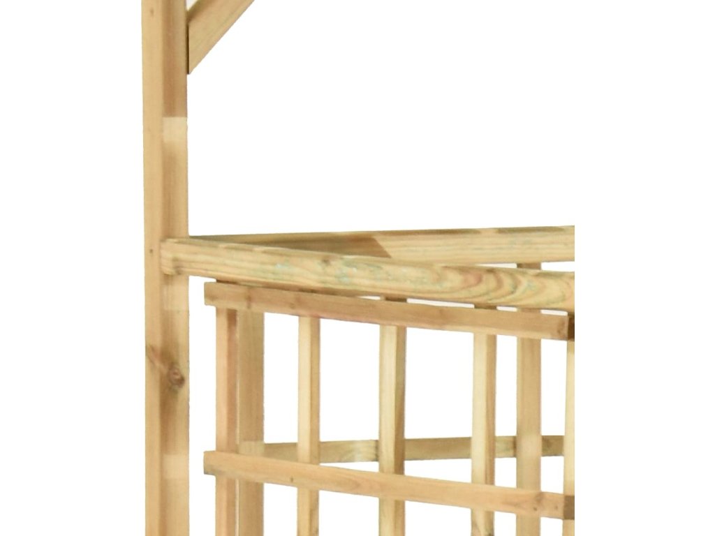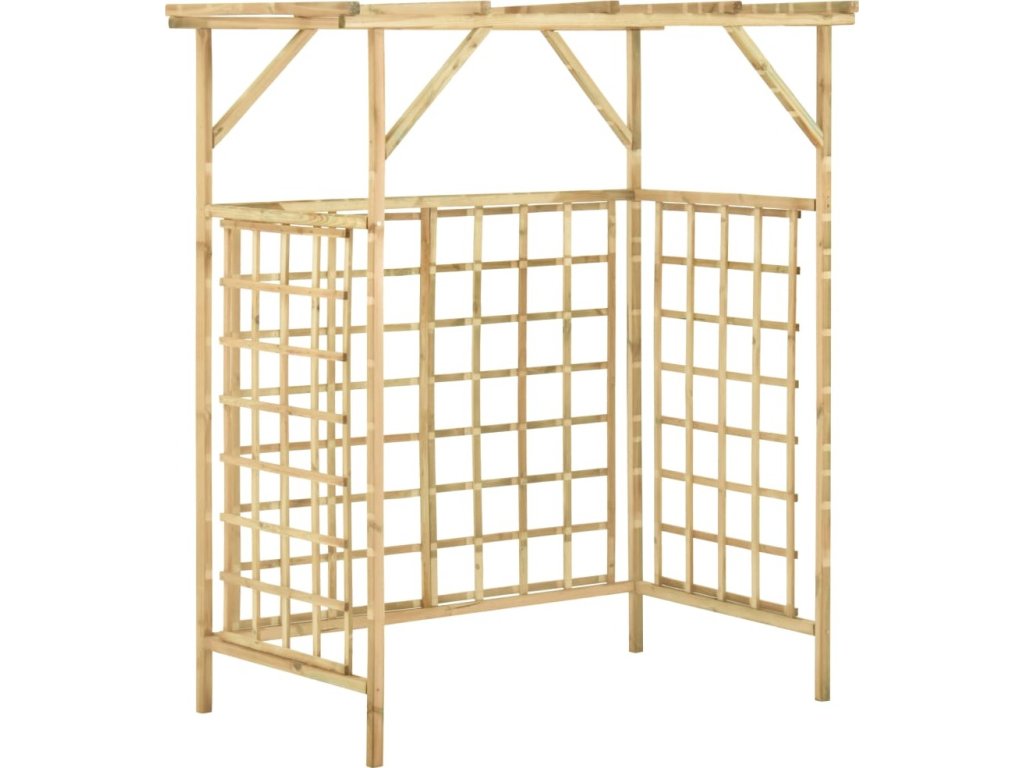 Tento dřevěný truhlík je vyrobený ze zeleného impregnovaného borového dřeva, takže je bytelný, má dlouhou životnost a je odolný proti hnilobě. Zabudovaná treláž je skvělá opora pro vaše popínavé růže nebo jiné popínavky. Pod tuto zahradní pergolu můžete umístit 2 popelnice, které krásně zakryje před pohledem ze zahrady.