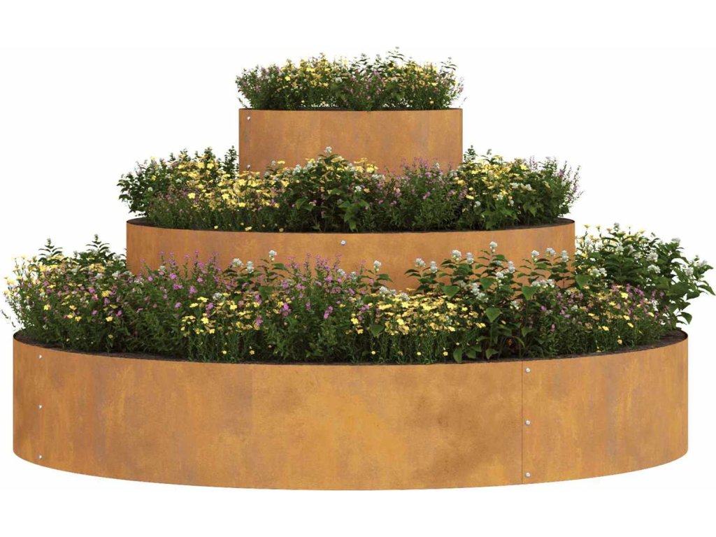 - Materiály: Tenhle květináč je vyroben z pevné oceli a má odolnou konstrukci, která podpoří růst rostlin a vydrží venkovní podmínky. Silná ocel zajišťuje, že si udrží svůj tvar a je skvělou volbou pro sezónní kytičky i trvalky.
