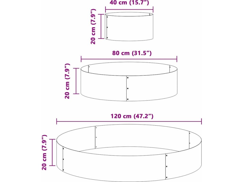 Kovový květináč do zahrady přináší moderní styl s jednoduchým a elegantním designem. Jeho štíhlý kulatý tvar a ocelová konstrukce dodávají industriální vzhled, kterej se hodí k různým zahradním dekoracím. Tenhle květináč je navrženej tak, aby byl funkční, a přitom vylepšoval vzhled zahrady a terasy. Jeho jedinečnej design umožňuje snadno umístit ho kdekoliv, což je ideální pro ty, co chtějí vstříknout moderní prvek do svých venkovních prostor.