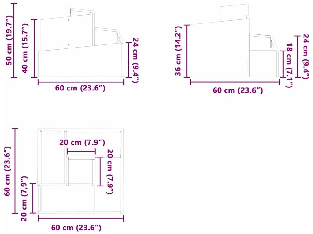 - Celkové rozměry: 60 x 60 x 50 cm (D x Š x V)