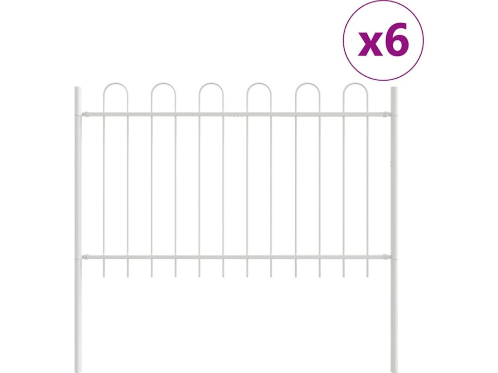 Zahradní plot 6 pcs Bílá 10,2 x 0,8 m Práškově lakovaná ocel [3334124]