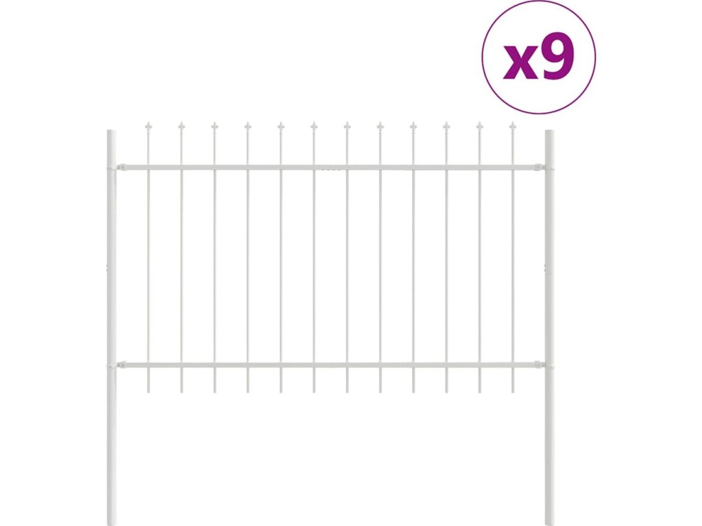 Zahradní plot 9 pcs Bílá 15,3 x 1,2 m Práškově lakovaná ocel [3334181]