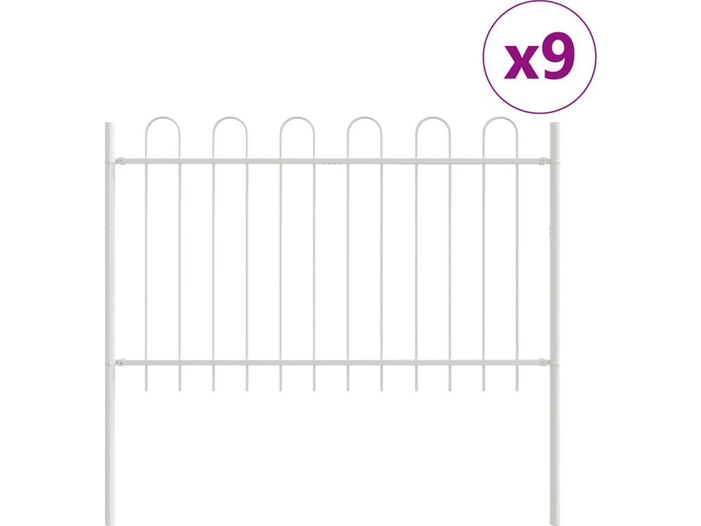 Zahradní plot 9 pcs Bílá 15,3 x 1 m Práškově lakovaná ocel [3334185]