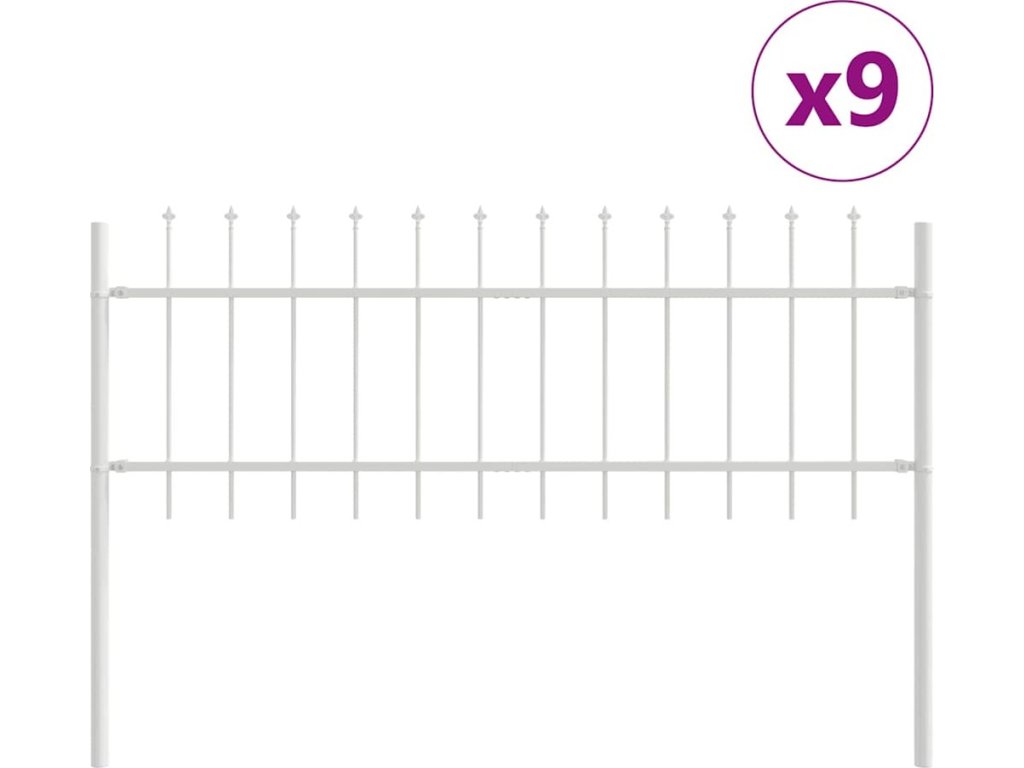 Zahradní plot 9 pcs Bílá 15,3 x 0,6 m Práškově lakovaná ocel [3334178]