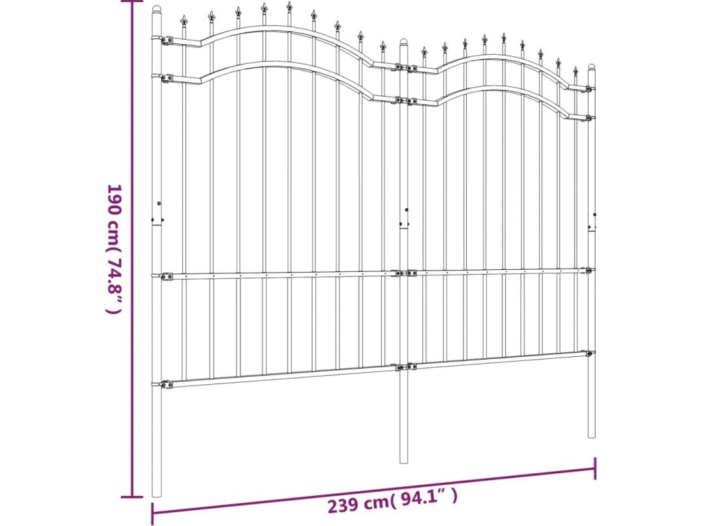 Zahradní plot s kopím nahoře černý 239 x 150 cm, práškově lakovaná ocel [151082]