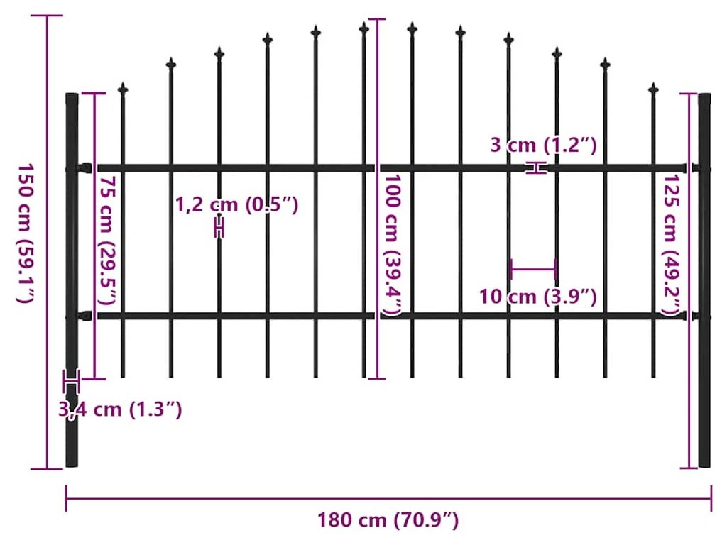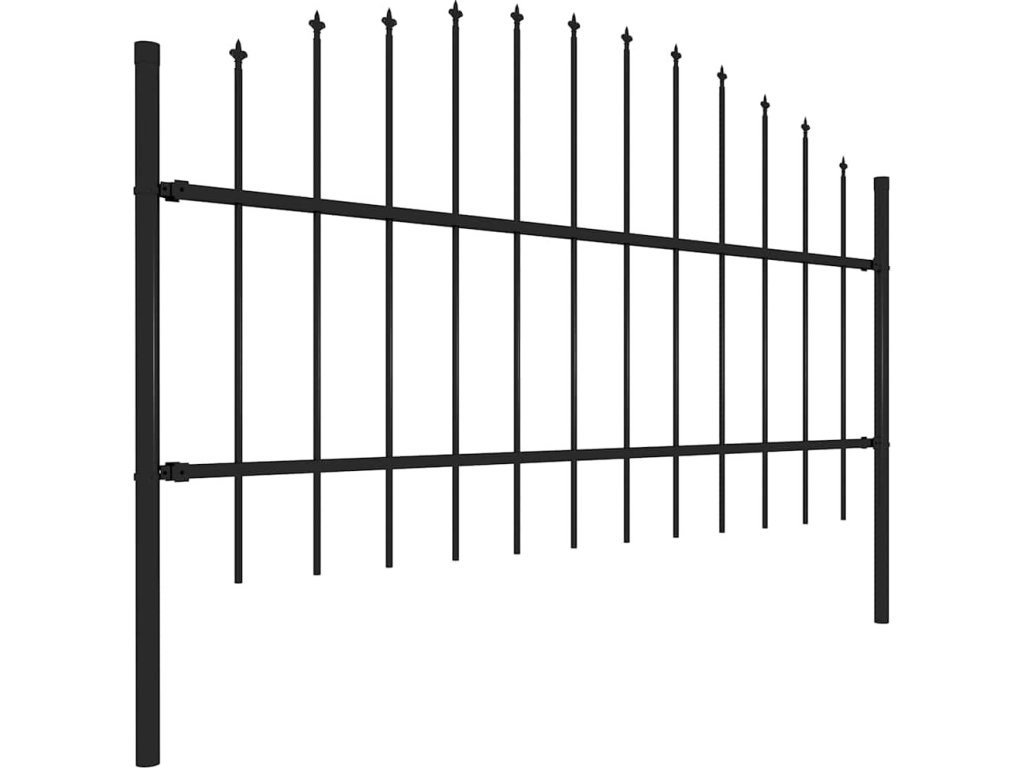 Zahradní plot s kopím nahoře ocelový 181 x 100 cm černý [144941]