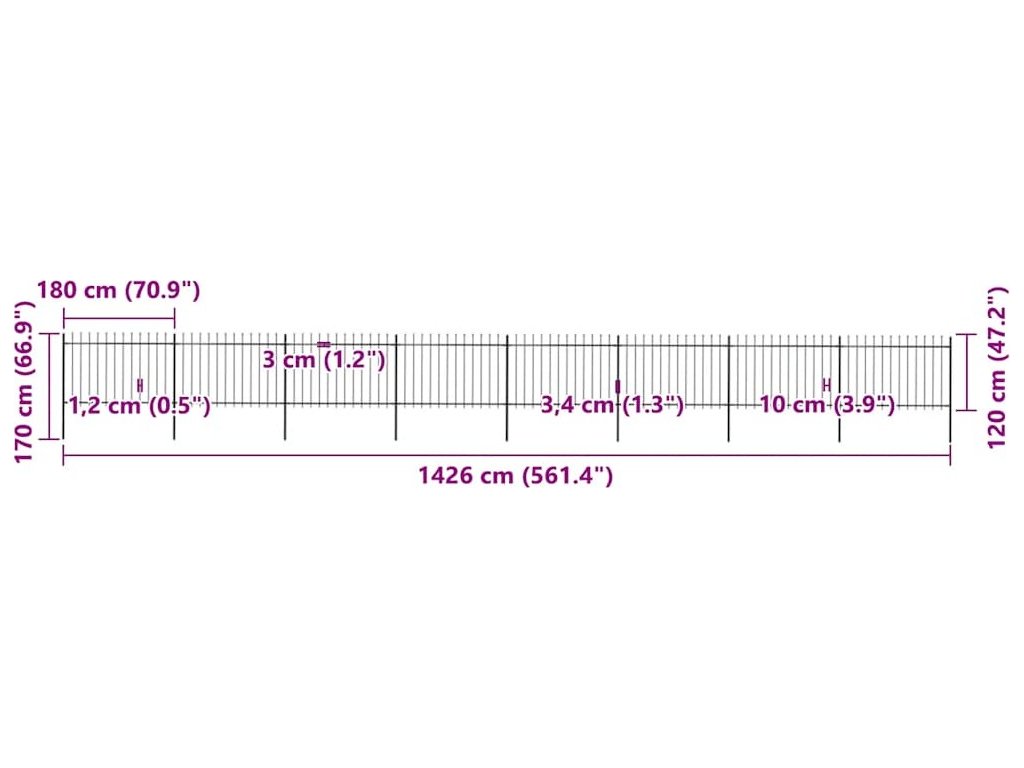 Zahradní plot s kopím nahoře ocelový 1426 x 120 cm [277627]