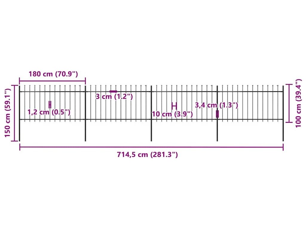 Zahradní plot s kopím nahoře ocelový 714,5 x 100 cm [277614]