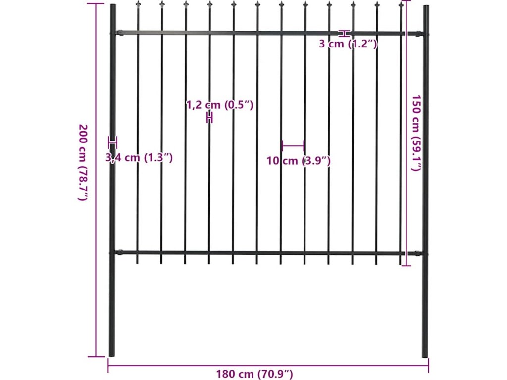 Zahradní plot s kopím nahoře ocelový 181 x 150 cm [144927]