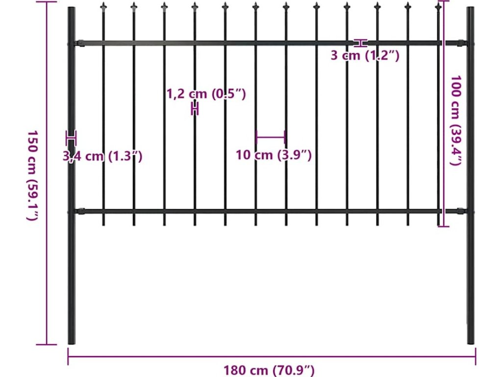 Zahradní plot s kopím nahoře ocelový 181 x 100 cm [144925]