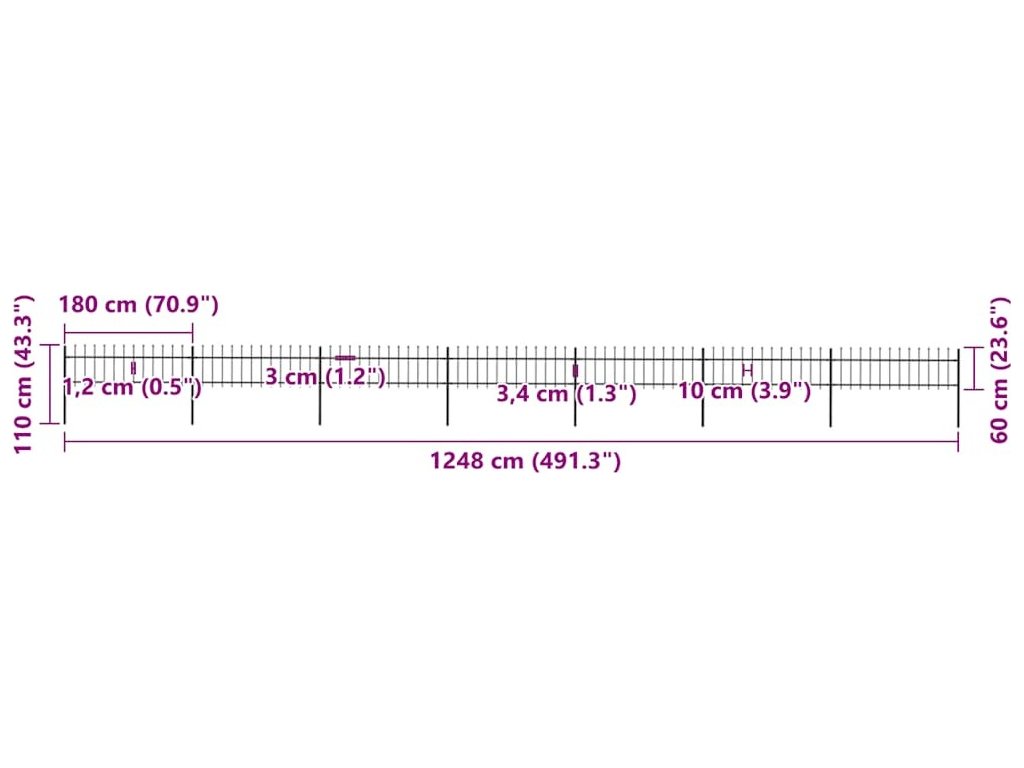 Vytvořte si okolo vaší zahrady, domu nebo příjezdové cesty elegantní oplocení s naším zahradním plotem! Tvoří ho 7 plotových dílců s 8 sloupky a má celkovou délku 11,9 metrů. Umožní vám okolo vaší zahrady, domu, komerčního pozemku nebo výběhu pro zvířata postavit pevnou, robustní bariéru. Jedná se o bezpečný a bezúdržbový dekorativní zahradní plot.