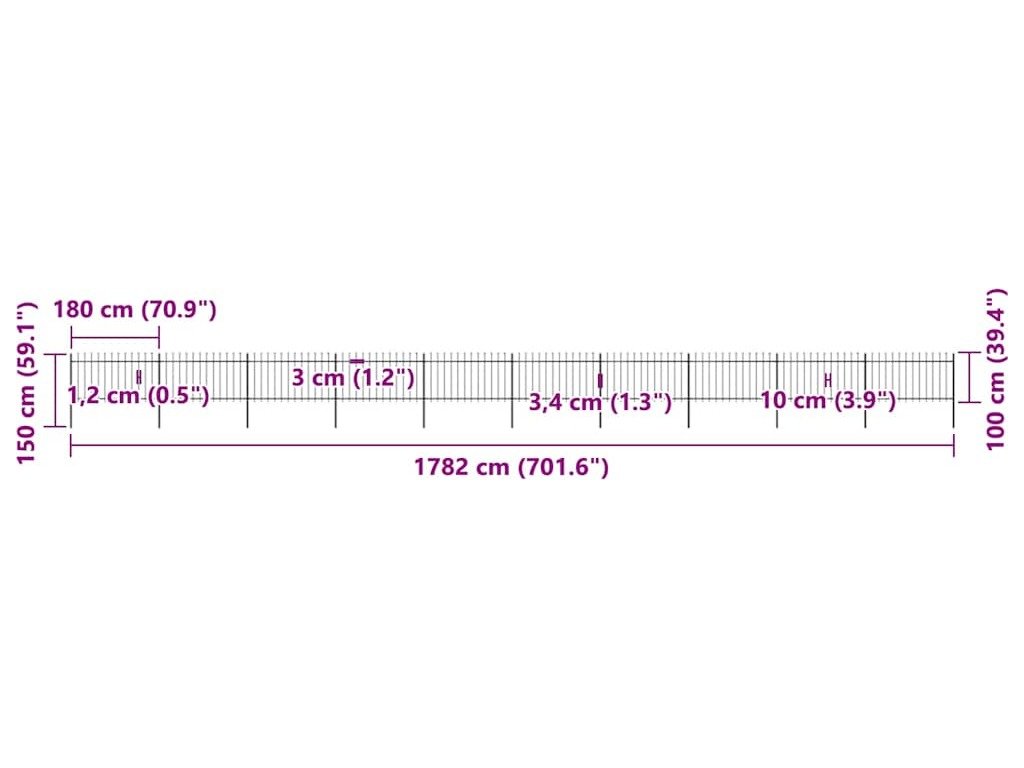 Zahradní plot s kopím nahoře ocelový 1781,5 x 100 cm [277620]