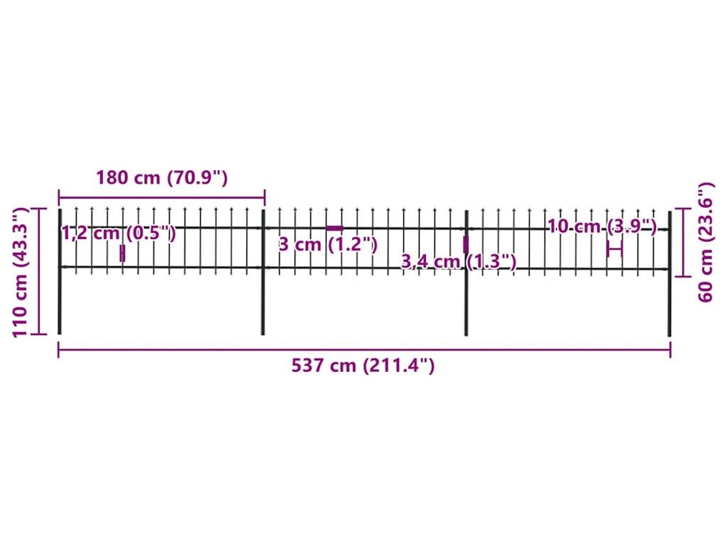 Zahradní plot s kopím nahoře ocelový 537 x 60 cm [277595]