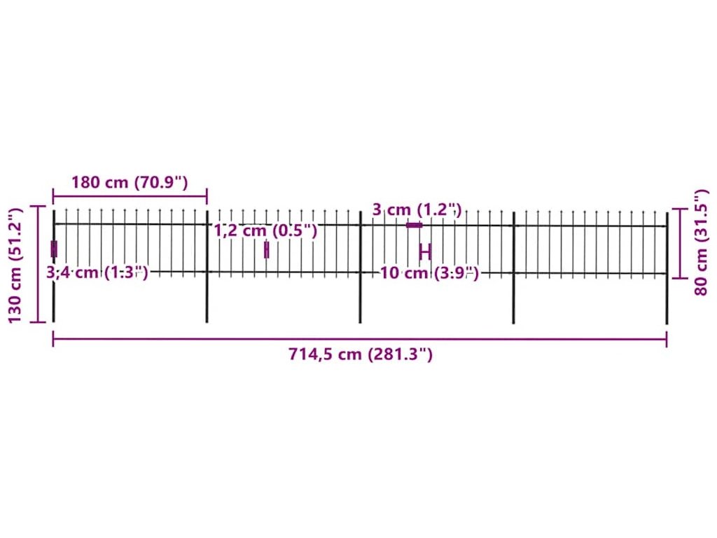 Zahradní plot s kopím nahoře ocelový 714,5 x 80 cm [277605]