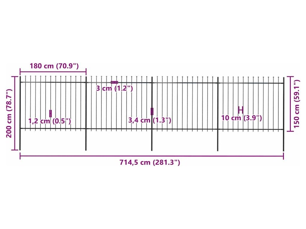 Zahradní plot s kopím nahoře ocelový 714,5 x 150 cm [277632]