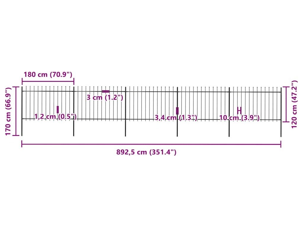 Zahradní plot s kopím nahoře ocelový 892,5 x 120 cm [277624]