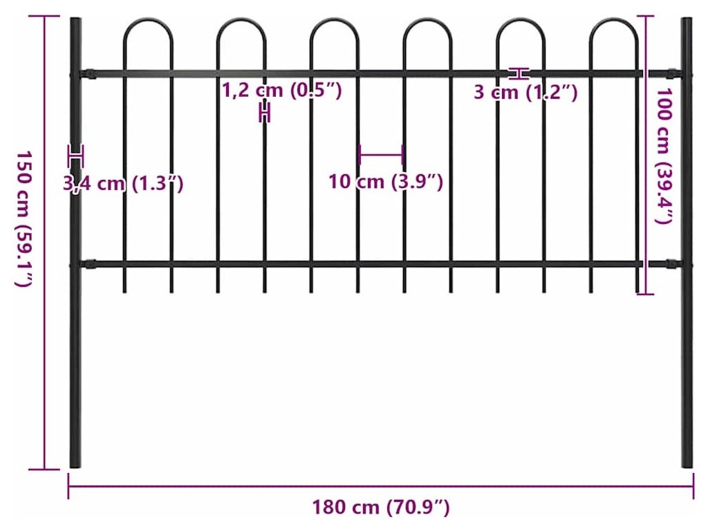 Zahradní plot s obloukem nahoře ocelový 181 x 100 cm [144930]