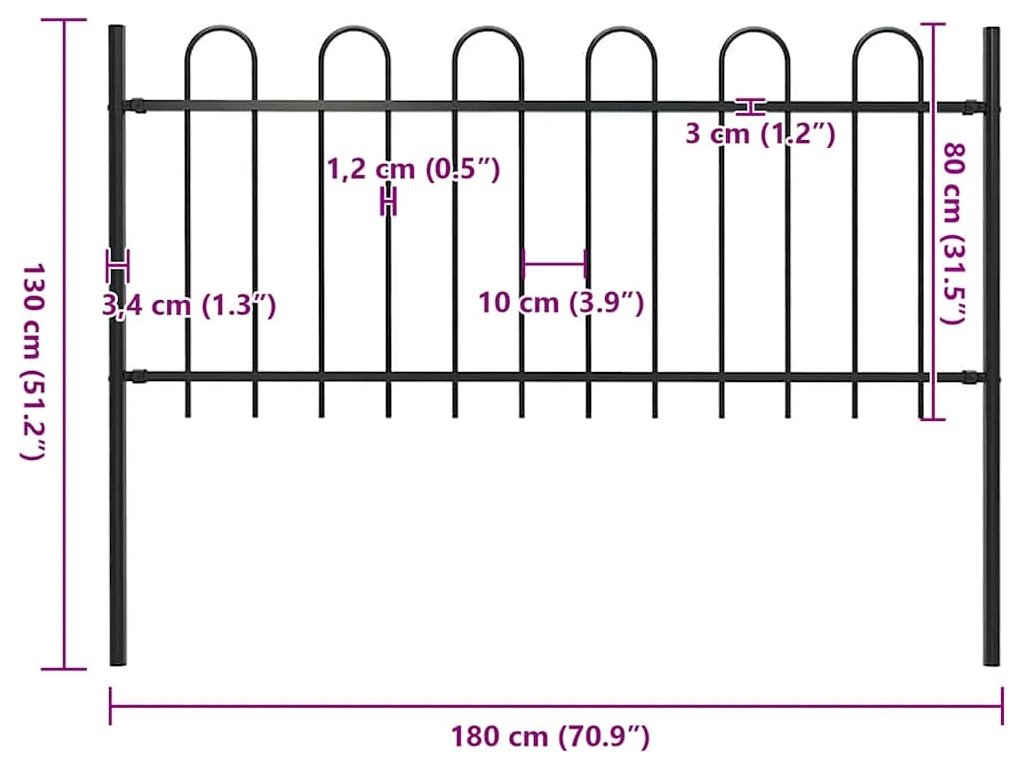 Zahradní plot s obloukem nahoře ocelový 181 x 80 cm [144929]