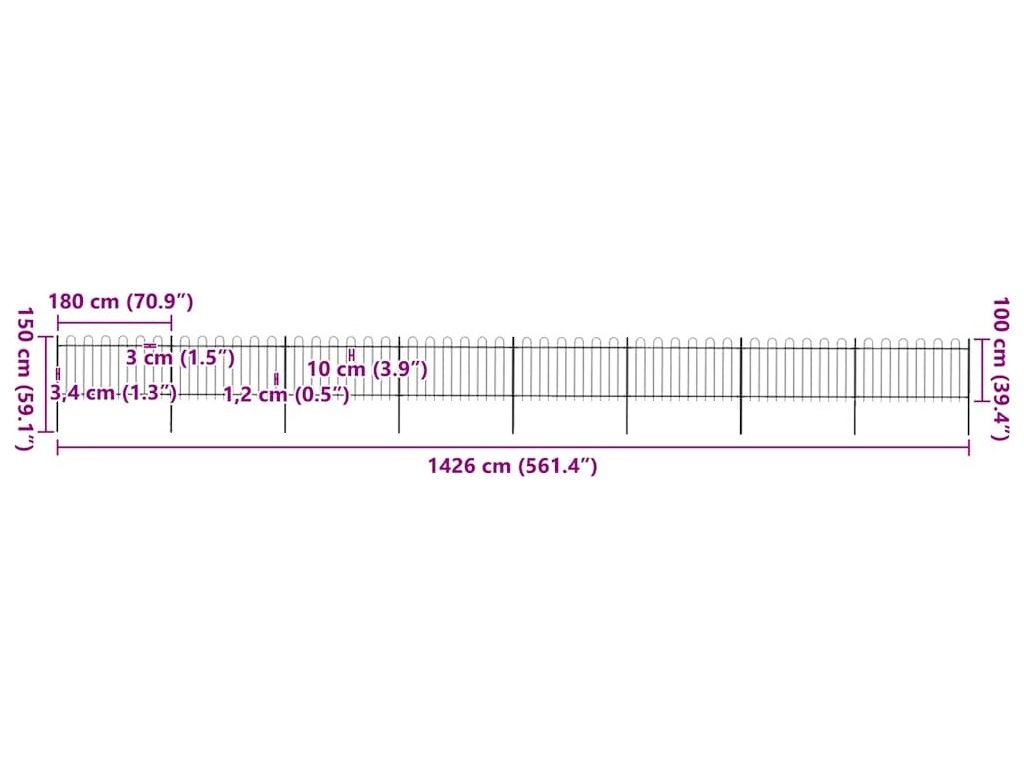 Zahradní plot s obloukem nahoře ocelový 1426 x 100 cm [277663]