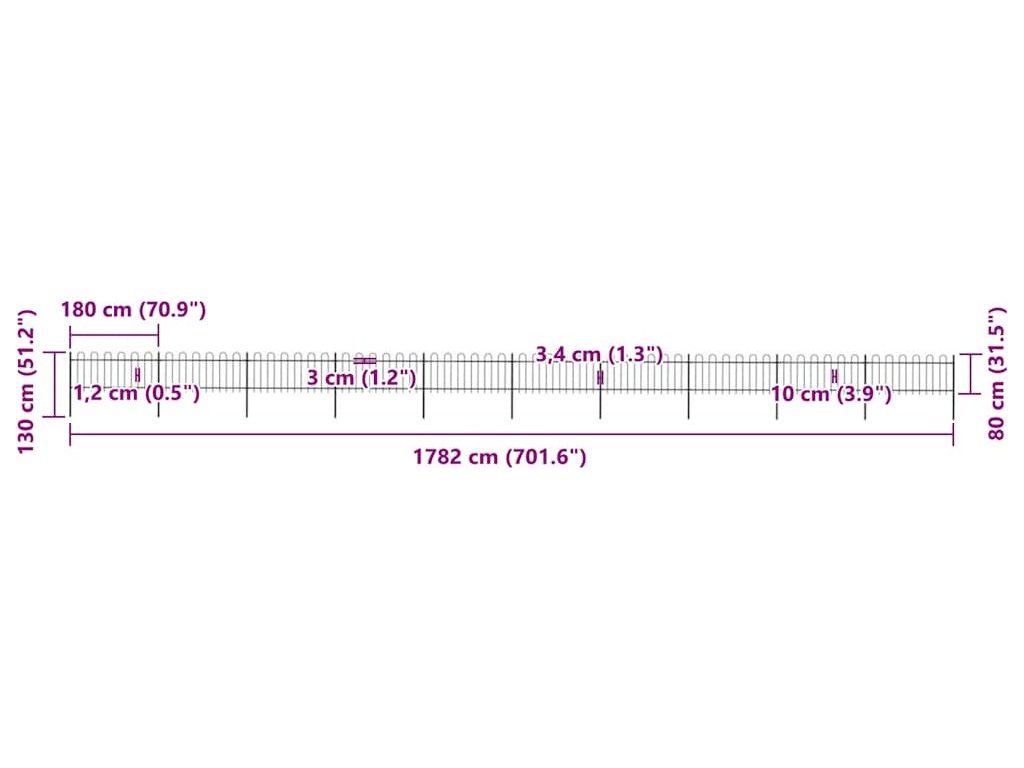 Zahradní plot s obloukem nahoře ocelový 1781,5 x 80 cm [277656]