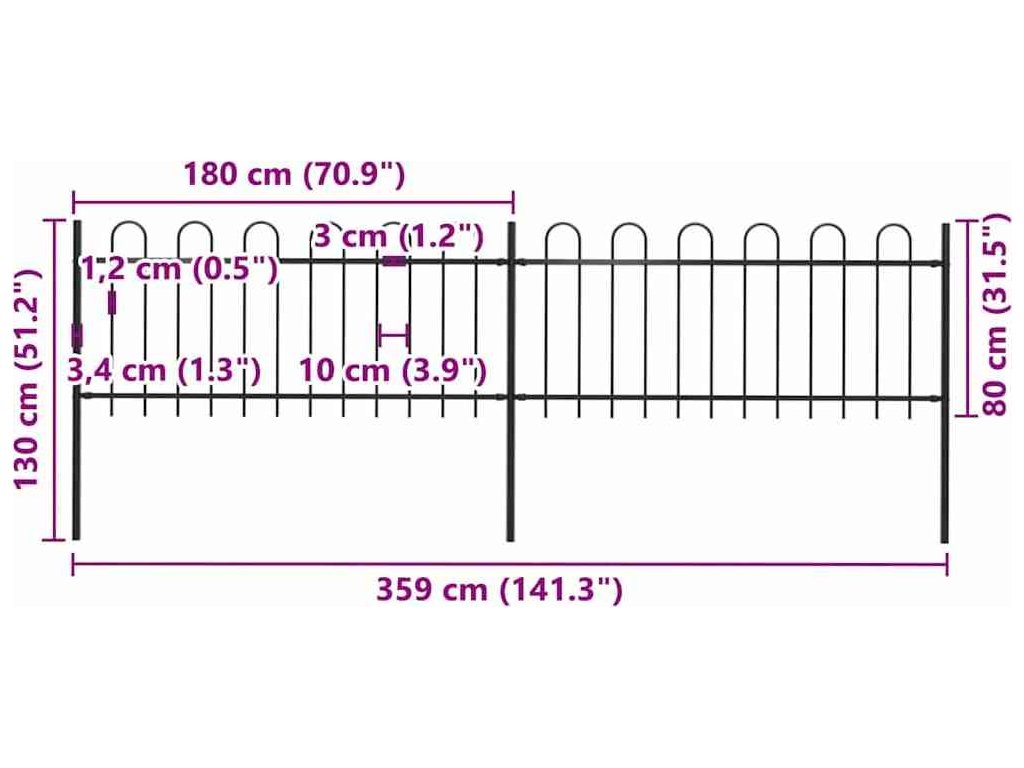 Zahradní plot s obloukem nahoře ocelový 359 x 80 cm [277648]