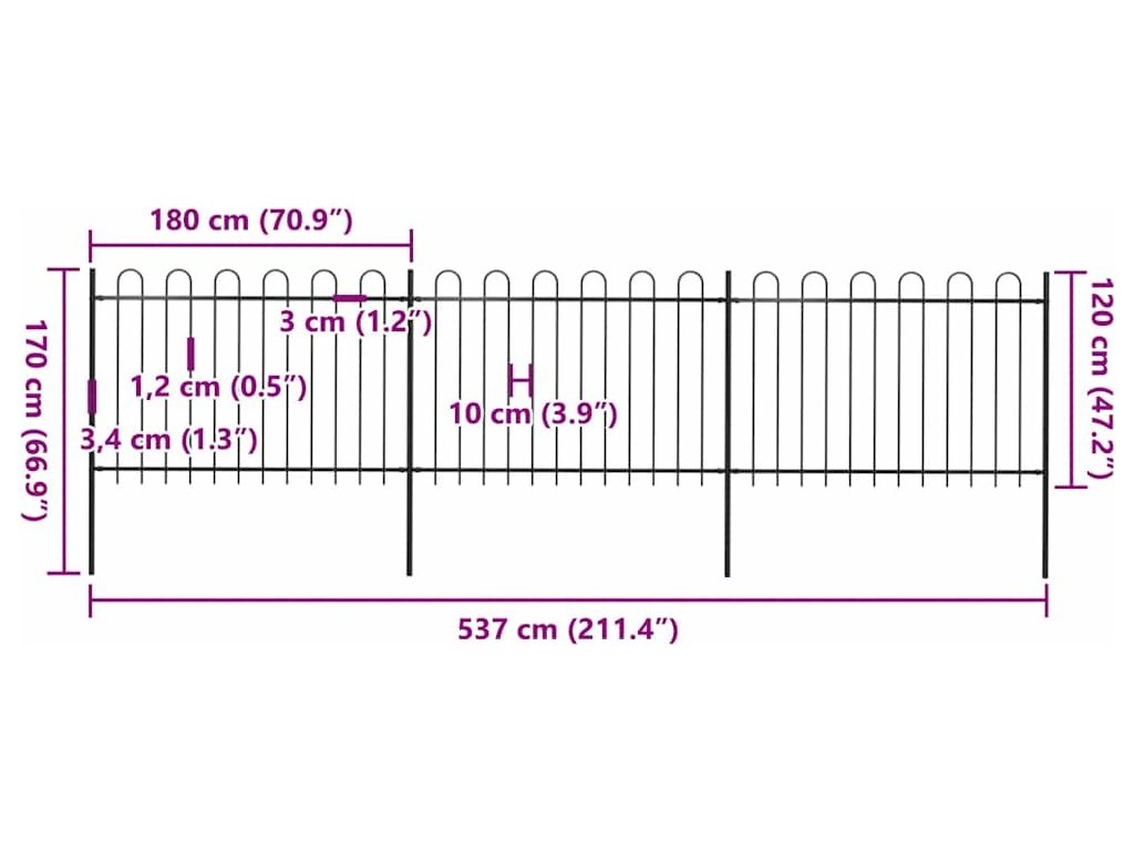 Zahradní plot s obloukem nahoře ocelový 537 x 120 cm [277667]
