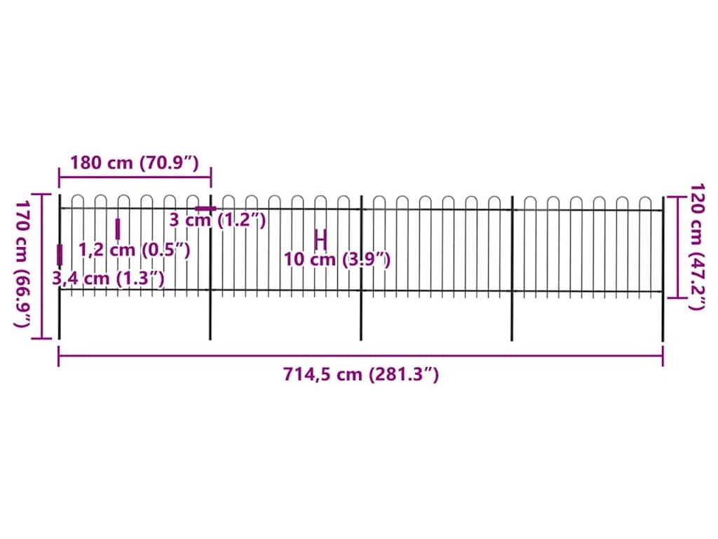Zahradní plot s obloukem nahoře ocelový 714,5 x 120 cm [277668]