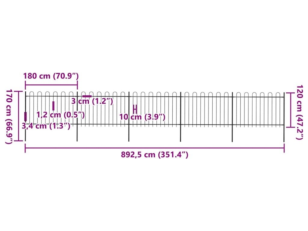 Zahradní plot s obloučky ocelový 8,5 x 1,2 m [277669]