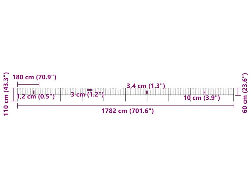 Zahradní plot s obloukem nahoře ocelový 1781,5 x 60 cm [277647]