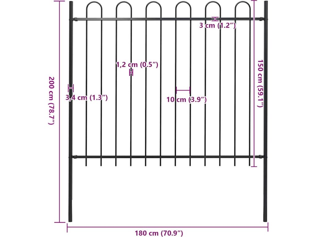 Vytvořte si okolo vaší zahrady, domu nebo příjezdové cesty elegantní oplocení s naším dekorativním zahradním plotem s obloučky! Je vyroben z oceli a má celkovou délku 1,8 metrů. Pomůže vám okolo vaší zahrady, domu, komerčního pozemku nebo výběhu pro zvířata vztyčit robustní bariéru.