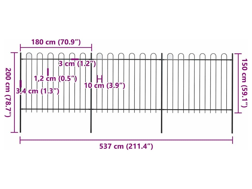 Zahradní plot s obloukem nahoře ocelový 537 x 150 cm [277676]